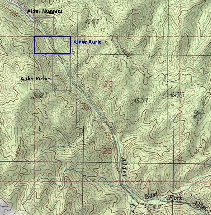 Alder Creek is a unique mining area, accessible in early spring when other areas tend to still be snowed in. Even in heavy snow winters, I have accessed these sites at the beginning of April, giving you an area that could be worked early on in the season. With only being a couple minutes out of Garden Valley (about 5 miles), it has close services and great access into the claim. There are existing mining claims that encompass all up & down Alder Creek (abutting these claims to the north and south), and from the pictures illustrated in “Show me the Gold” (see below) & patented lodes from the geological reports, it’s easy to understand how rich the prospects and potential is in here.