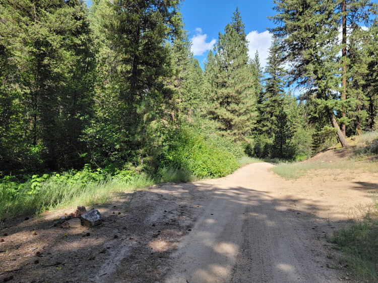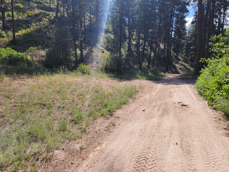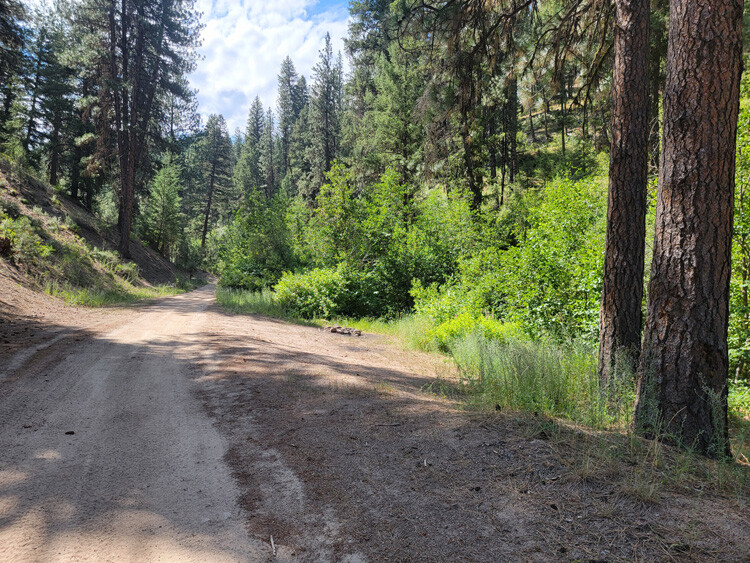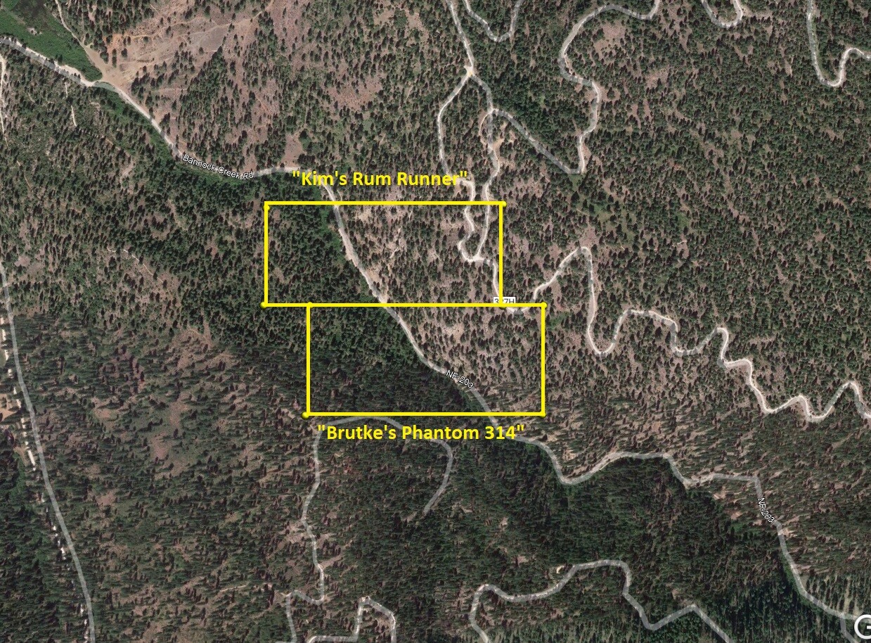 Driving Directions from Boise: Take HWY 21 (from I-84 Exit 57), north out of Boise for 35 miles, or about 1 miles past Idaho City. Turn right (east) onto Bannock Creek Road (NF304 turning into NF203), and stay on this for about 0.9 of a mile until you reach the mining claims. Just after the bridge, you will come to a junction (looks like a fork), the main NF 203 (to these claims) is on the left fork. You will also come to an opening (just past the state cabled off fence on the right), where it appears there is another fork, stay right. After going around the bend, be looking for a faded steel sign on the left (says Ace In the Hole III), this is the north boundary to Kim’s Run Runner. The road eventually tapers down to more of an ATV trail (midway through Brutke’s Phantom 314), where you will also find an open gate.