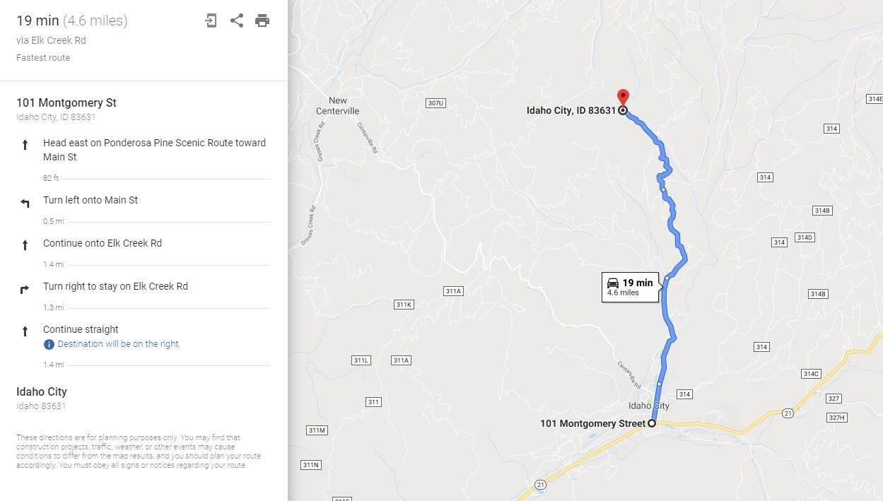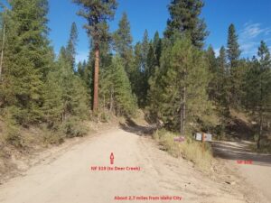 Driving Directions: The claims are located 4.3 miles outside the historic town of Idaho City. Driving directions to the claim: from Boise, travel north on HWY 21 to Idaho City (approximately 34 miles from I-84). Turn left (north) onto Main Street in Idaho City. Through the north end as you leave town, you will pass trailers and rustic places (lot of old equipment), with speed limit of 15, and private signs, just stay on the main road all the way through and keep following it straight. The name of the road changes to Elk Creek Road…which you will stay on for about 2.7 miles. You will come to a fork (NF 319 left and NF 379 right), take the fork on the left. There is also a sign at this junction that shows Deer Cr. to the left. In about one mile the main NF 319 road will continue up the Deer Cr. drainage or fork to the right, continue forward up the drainage for about a ½ mile until you reach the claims. The claims are marked on the creek side, next to the road.