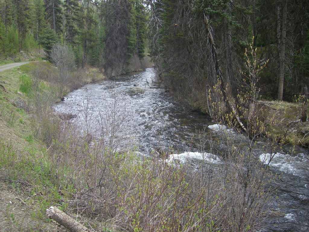Driving Directions from Boise: Take HWY 55 (from State Street aka HWY 44), north out of Boise towards McCall. You will stay on HWY 55 for approximately 83 miles, which is roughly 13 miles past Cascade (or 3 miles south of before reaching Donnelly). You will turn right (east) on Davis Creek Lane (Gold Fork Hot Springs and River access sign). Stay on this road for approximately 2.5 miles, then turn right at the T (just after the bridge) on Gold Fork Rd. The name of the road eventually changes to NF Road-498, after following this for another approximately 7 miles, you will have reached the claim. The claim is approximately 2.5 miles past the Gold Fork Hot Springs establishment. On the claim there is a bridge to access both sides of the river. Signage is posted clearly identifying the claim along the river side of the roadway.