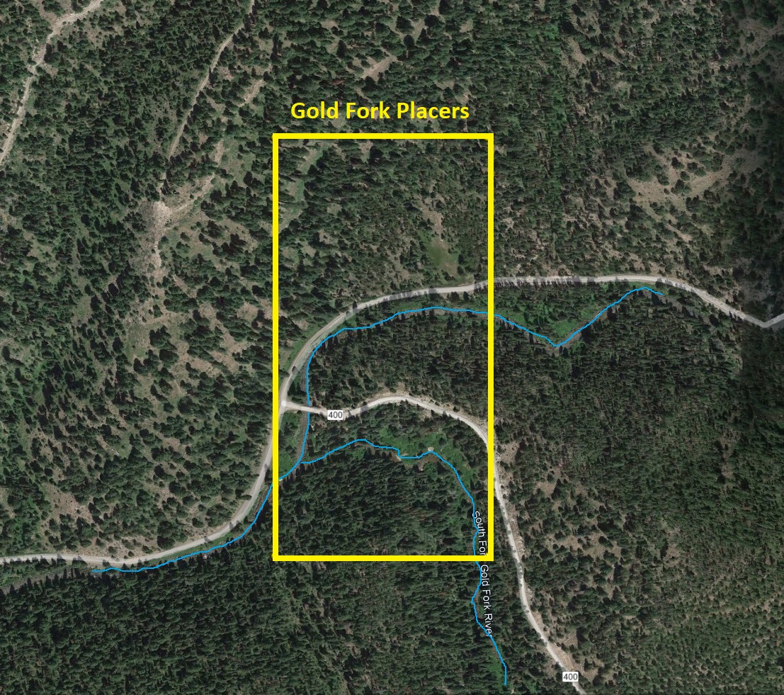 - River footage: 150’ main Gold Fork, 950’ of North Fork & 850’ of South Fork Gold Fork River - Large area “on” the claim