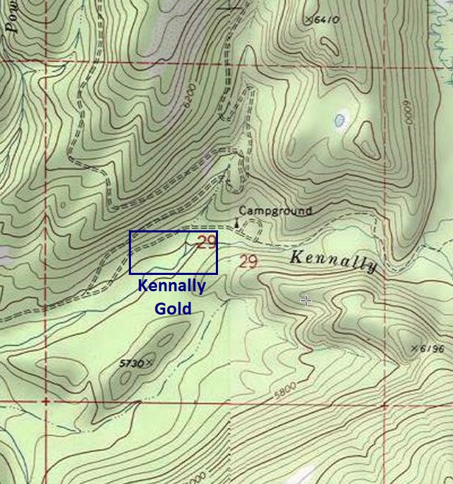 - River footage: 1400’ Kennally Creek - Camping area “on” and the Kennally Creek Campground abutting claim