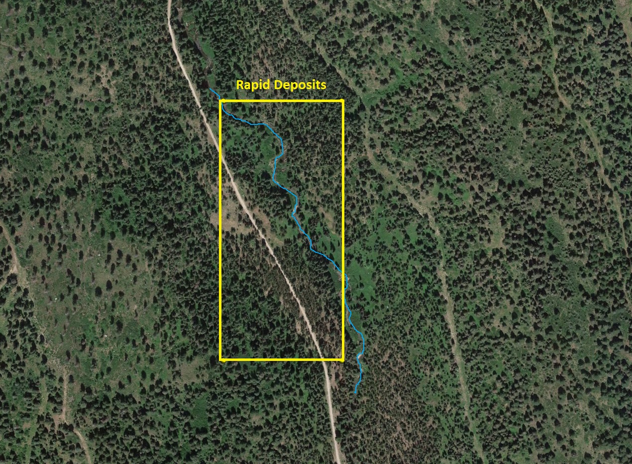 - River footage: 1200’ Rapid Creek - Large camping area on claim