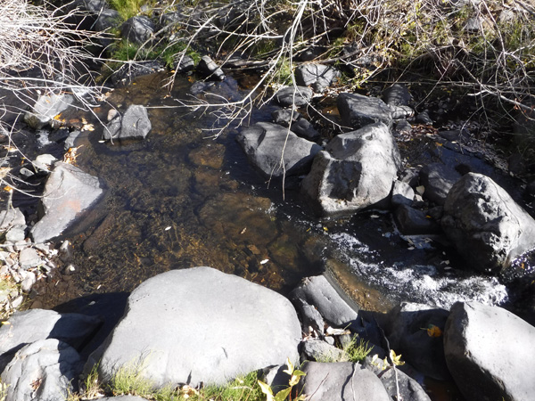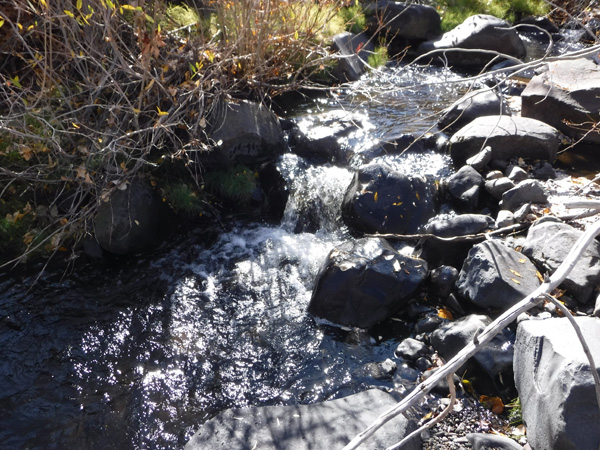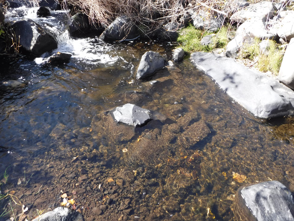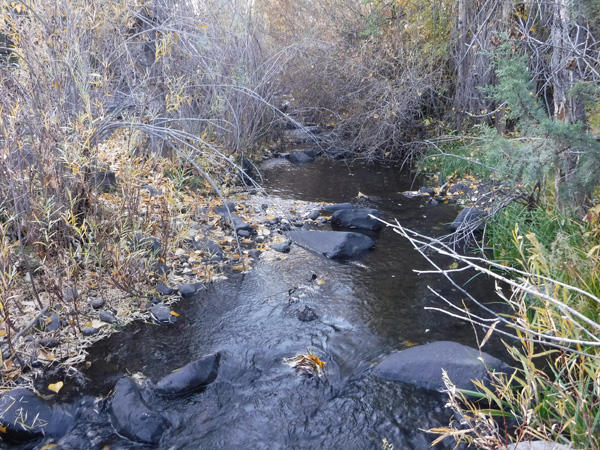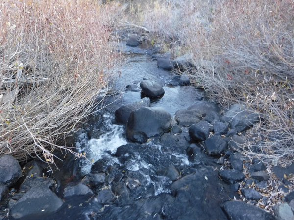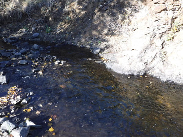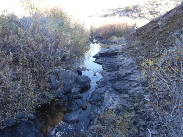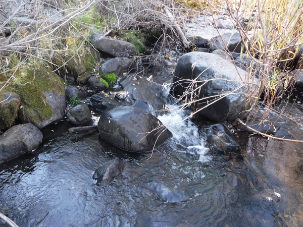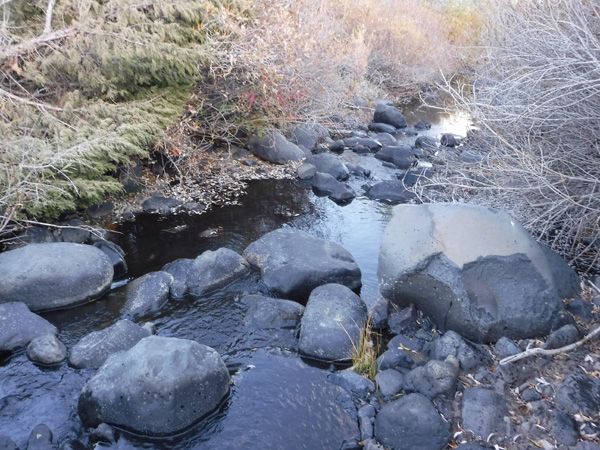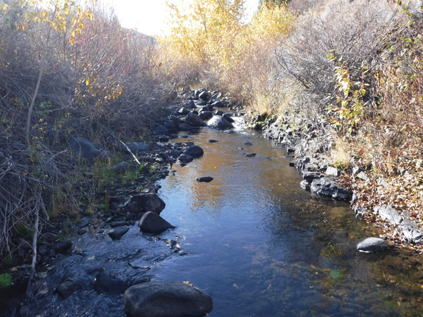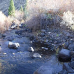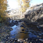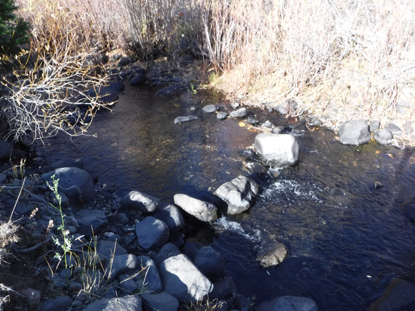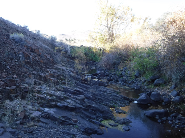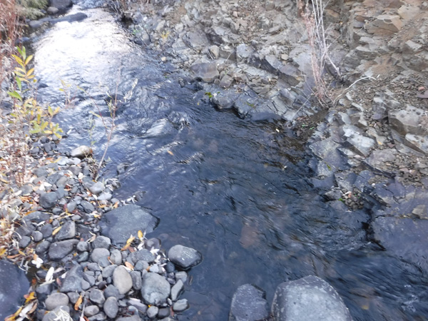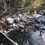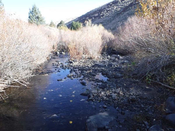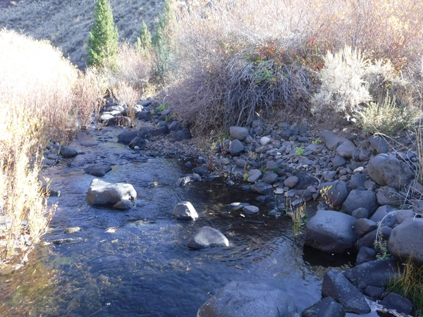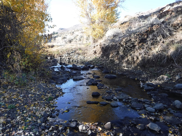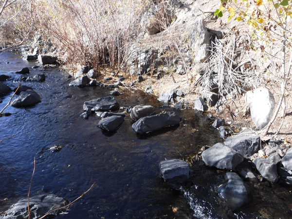 Bedrock is extremely shallow throughout this portion of Reynolds Creek. As you can see from the photos, there are MANY areas of exposed bedrock throughout all of these mining claims. These pictures were taken in late fall when the water is at its lowest, but still showing AMPLE water for gold recovery. With gold being significantly heavier (than all other elements), having exposed bedrock like this are sought after mining sites. I would also point out that each of these sites has existing flat areas, which is suitable for camping areas. Some (please review the pictures) are rougher than others, where some MINOR work would be needed to make them to your needs, but flatter terrain.
