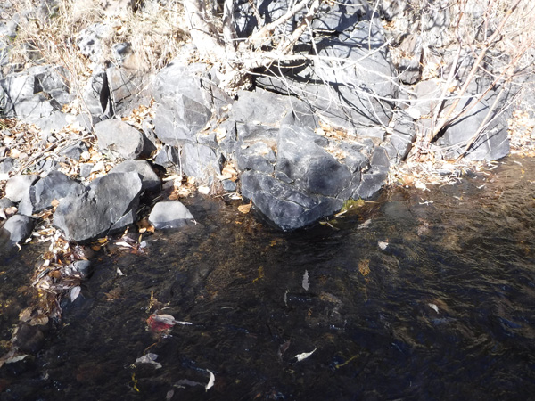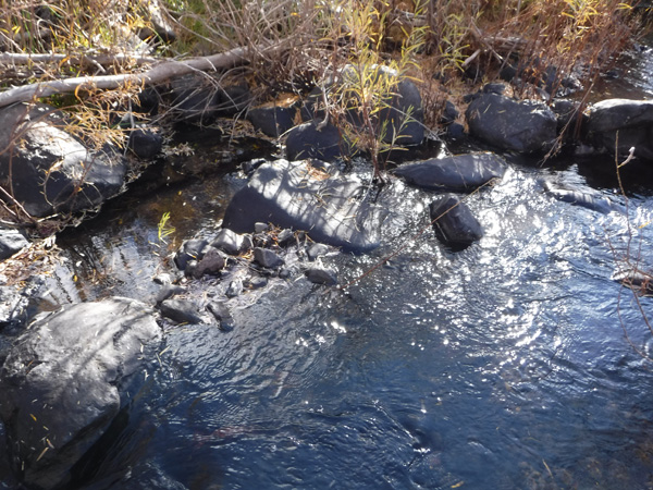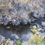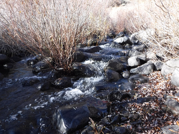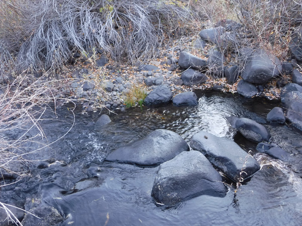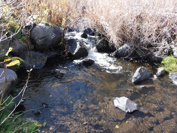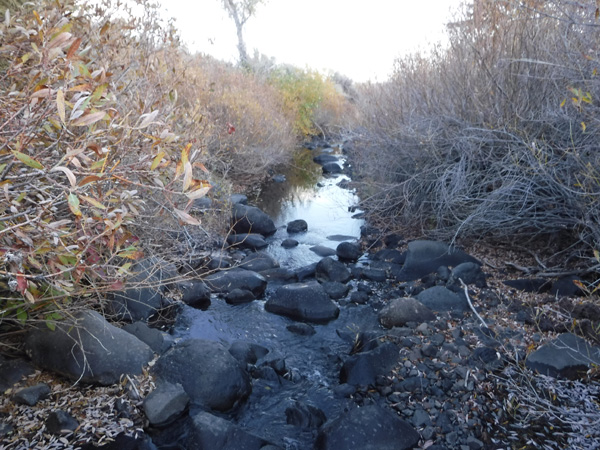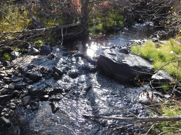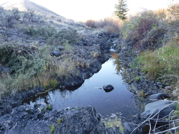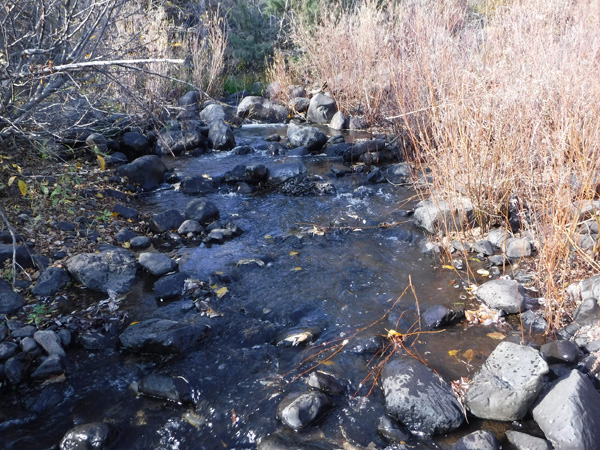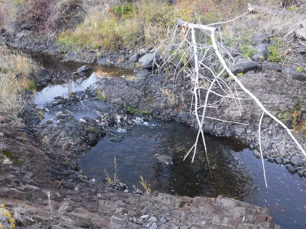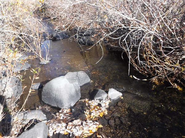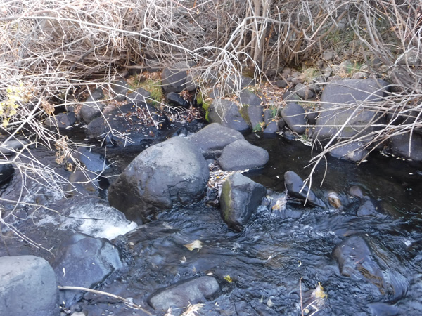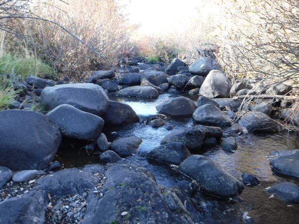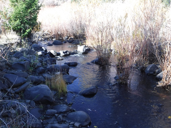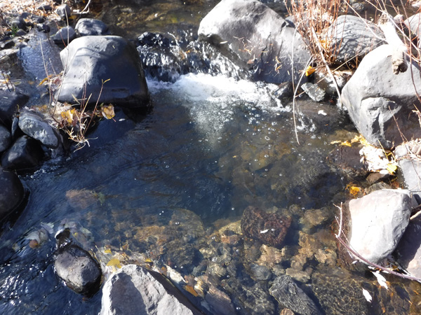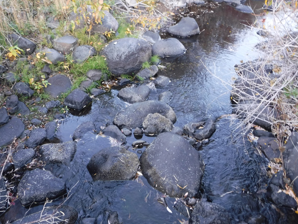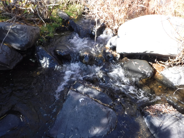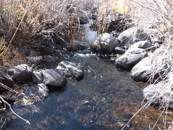 Bedrock is extremely shallow throughout this portion of Reynolds Creek. As you can see from the photos, there are MANY areas of exposed bedrock throughout all of these mining claims. These pictures were taken in late fall when the water is at its lowest, but still showing AMPLE water for gold recovery. With gold being significantly heavier (than all other elements), having exposed bedrock like this are sought after mining sites. I would also point out that each of these sites has existing flat areas, which is suitable for camping areas. Some (please review the pictures) are rougher than others, where some MINOR work would be needed to make them to your needs, but flatter terrain.