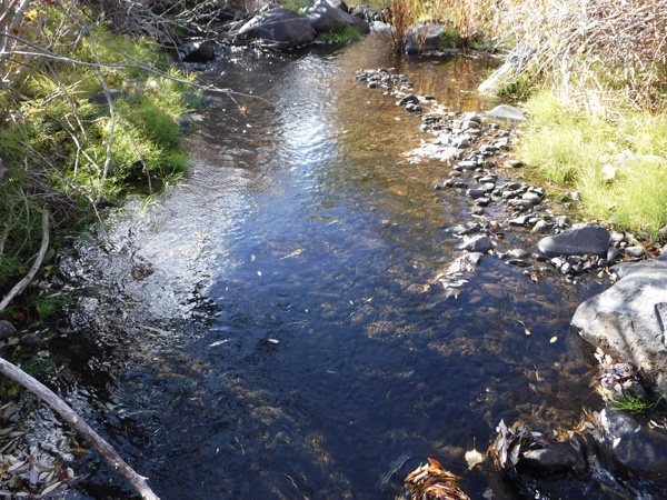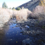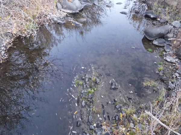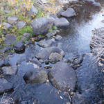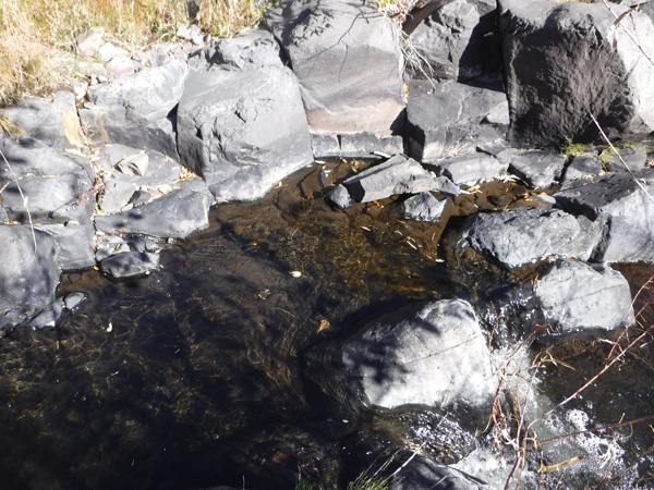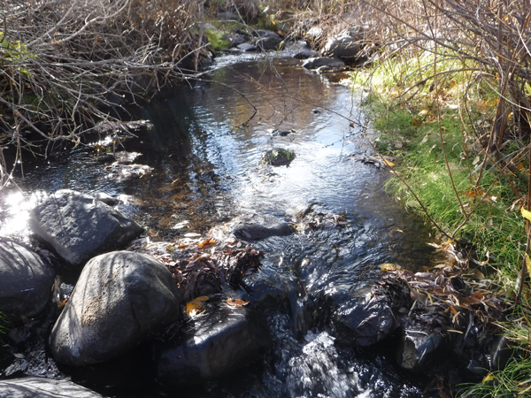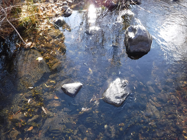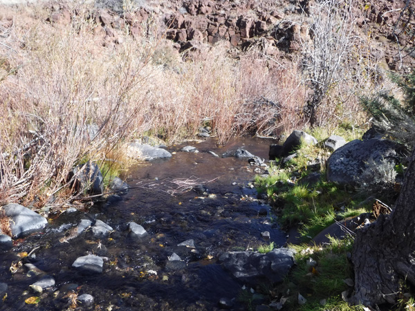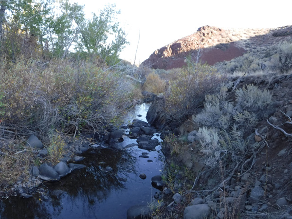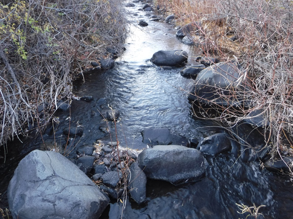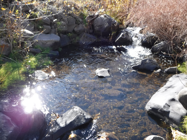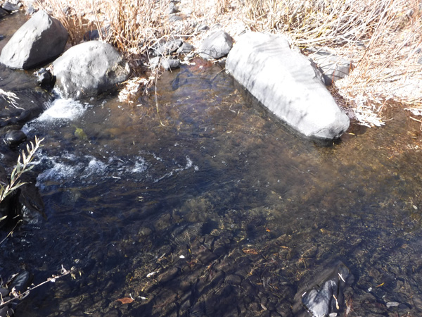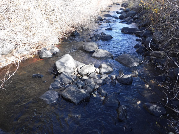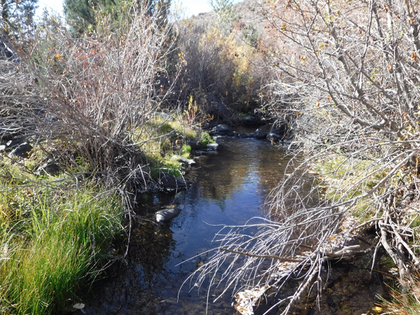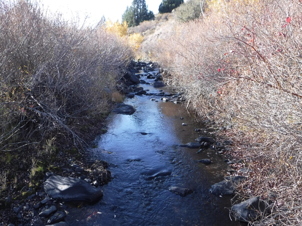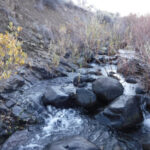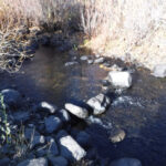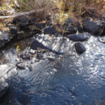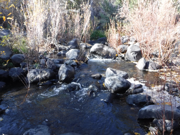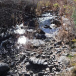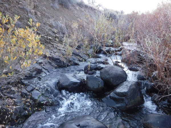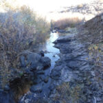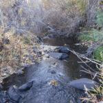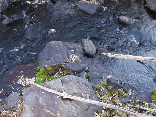Bedrock is extremely shallow throughout this portion of Reynolds Creek. As you can see from the photos, there are MANY areas of exposed bedrock throughout all of these mining claims. These pictures were taken in late fall when the water is at its lowest, but still showing AMPLE water for gold recovery. With gold being significantly heavier (than all other elements), having exposed bedrock like this are sought after mining sites. I would also point out that each of these sites has existing flat areas, which is suitable for camping areas. Some (please review the pictures) are rougher than others, where some MINOR work would be needed to make them to your needs, but flatter terrain.