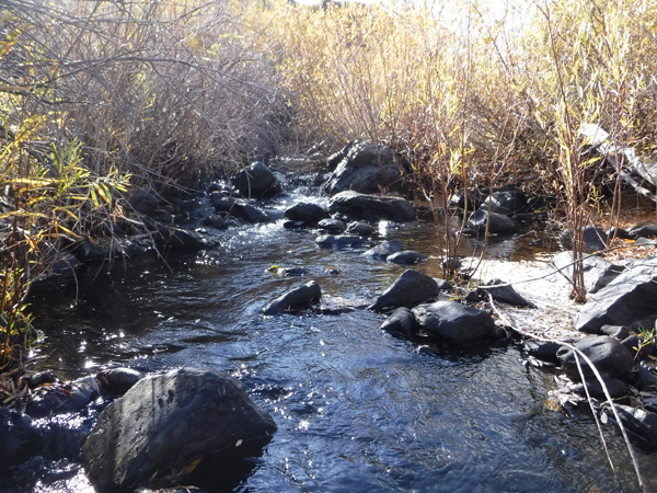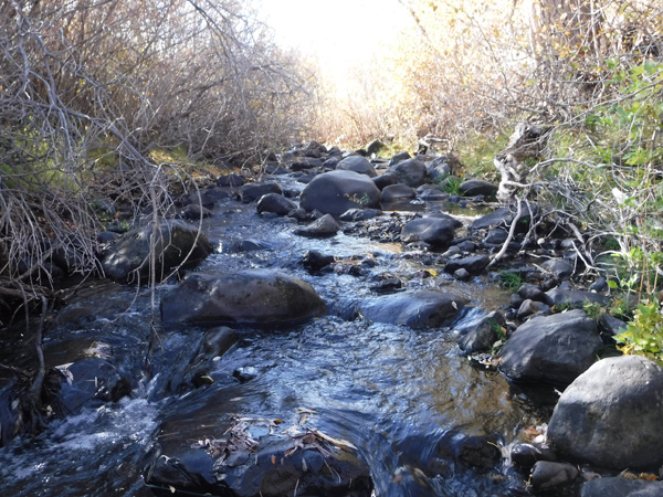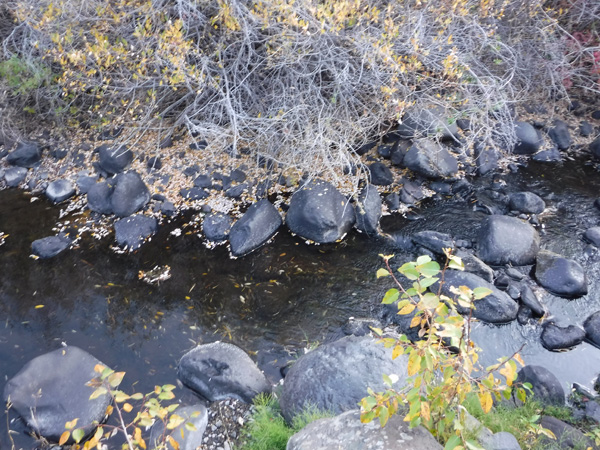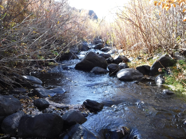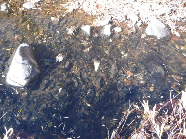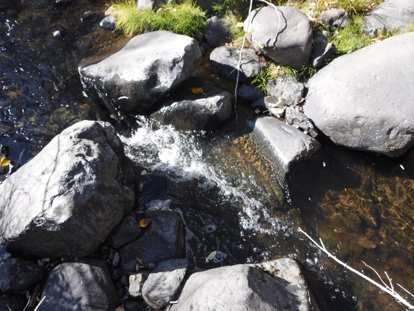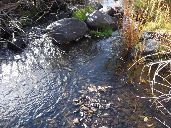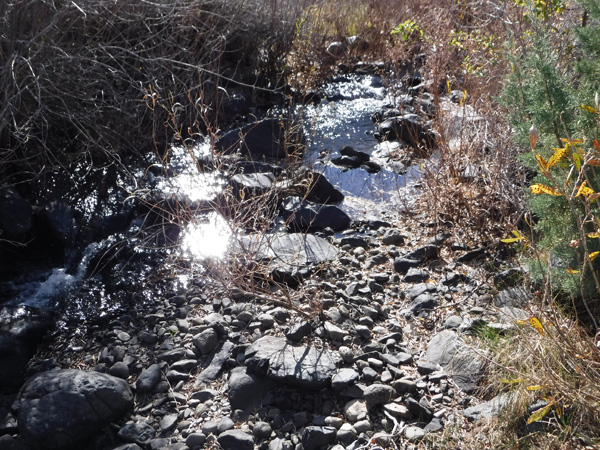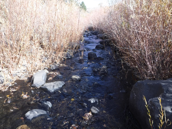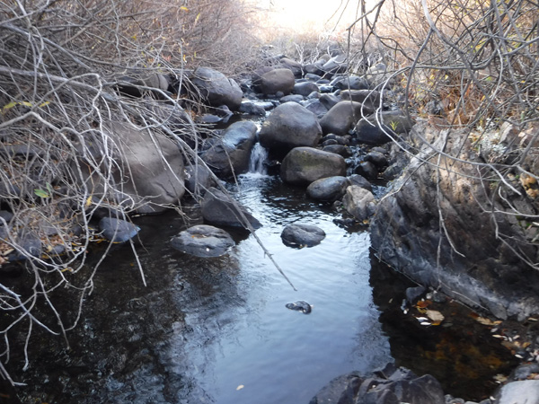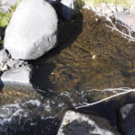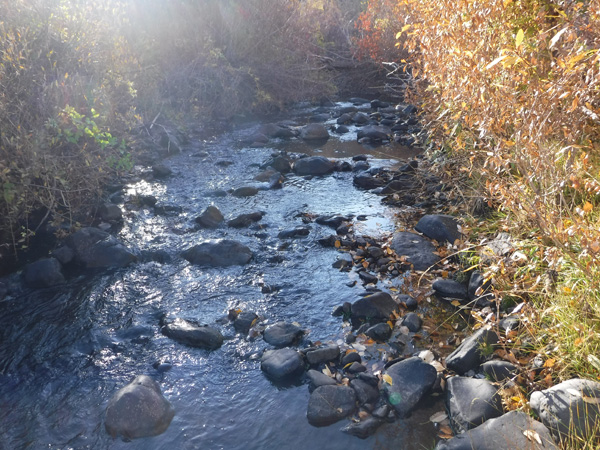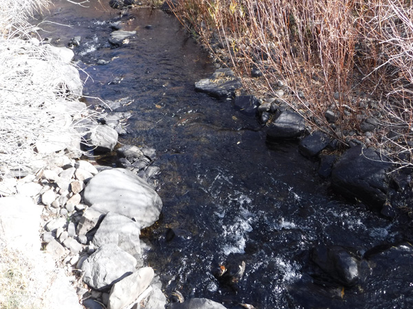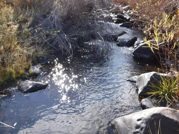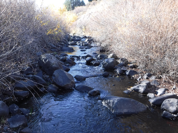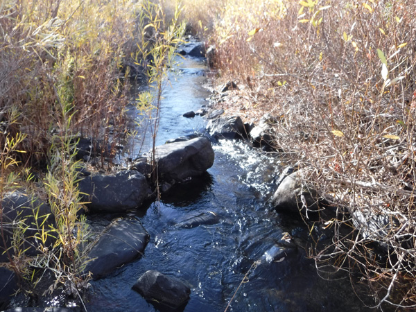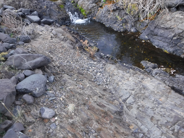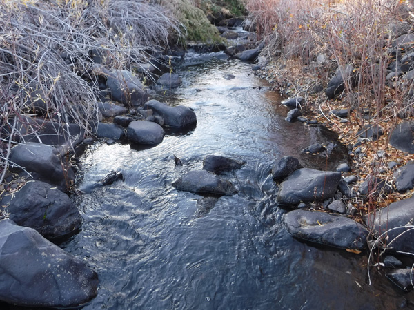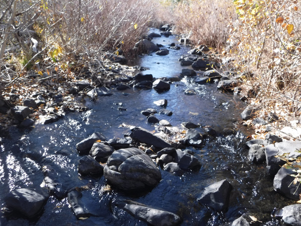 Bedrock is extremely shallow throughout this portion of Reynolds Creek. As you can see from the photos, there are MANY areas of exposed bedrock throughout all of these mining claims. These pictures were taken in late fall when the water is at its lowest, but still showing AMPLE water for gold recovery. With gold being significantly heavier (than all other elements), having exposed bedrock like this are sought after mining sites. I would also point out that each of these sites has existing flat areas, which is suitable for camping areas. Some (please review the pictures) are rougher than others, where some MINOR work would be needed to make them to your needs, but flatter terrain.