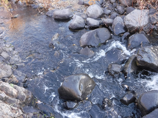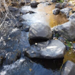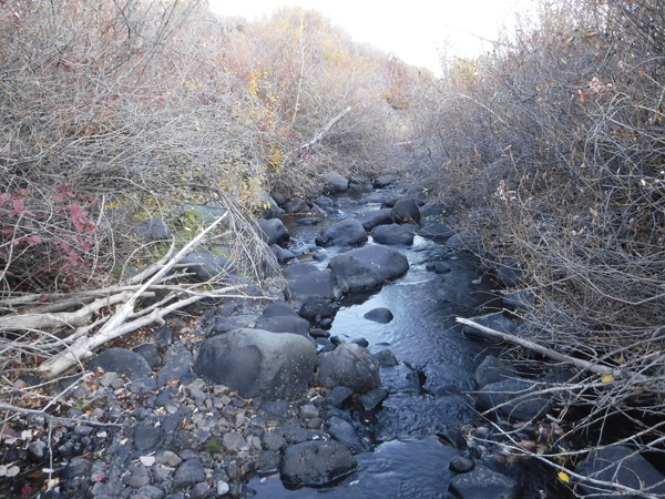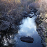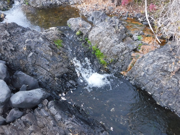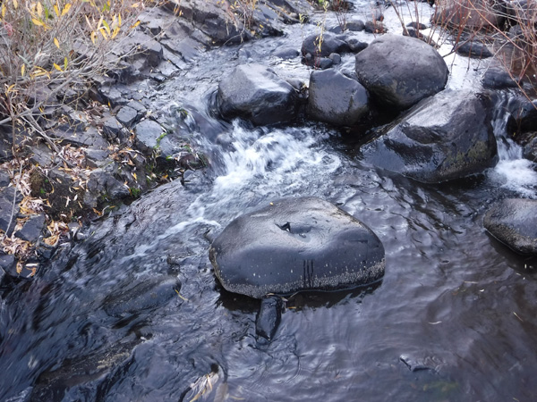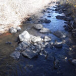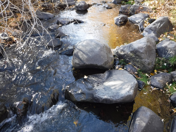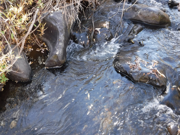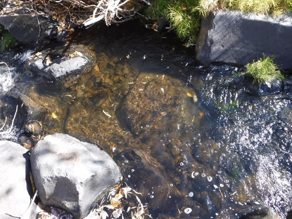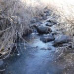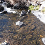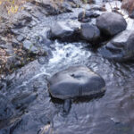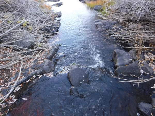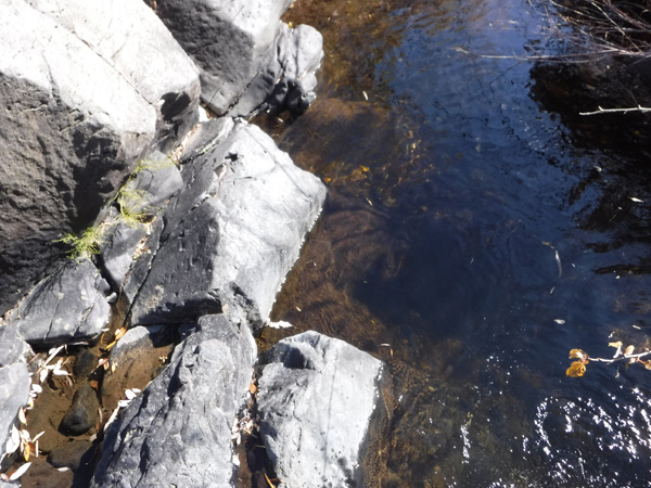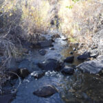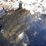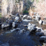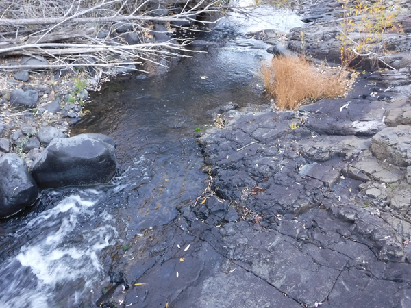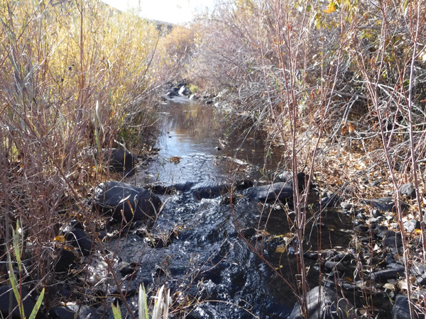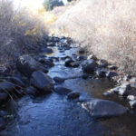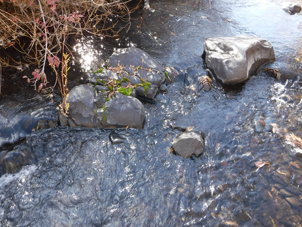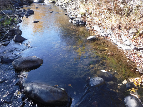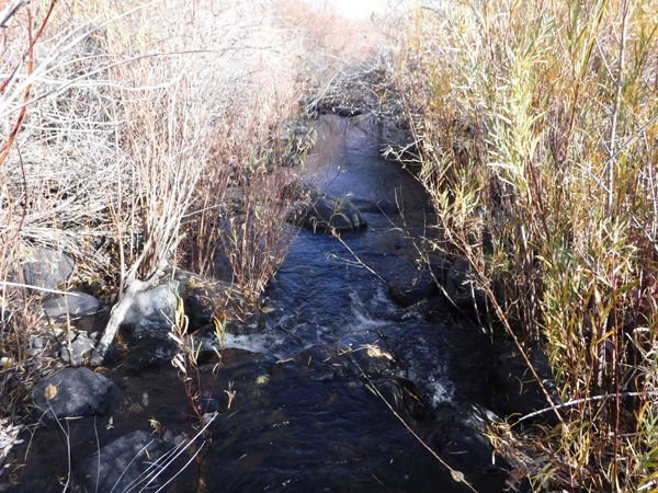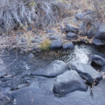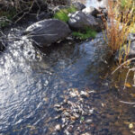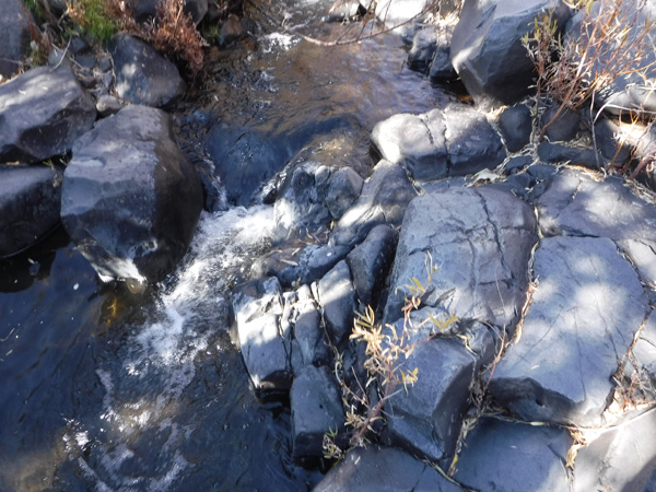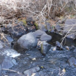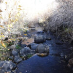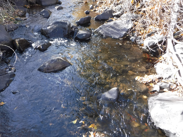 Bedrock is extremely shallow throughout this portion of Reynolds Creek. As you can see from the photos, there are MANY areas of exposed bedrock throughout all of these mining claims. These pictures were taken in late fall when the water is at its lowest, but still showing AMPLE water for gold recovery. With gold being significantly heavier (than all other elements), having exposed bedrock like this are sought after mining sites. I would also point out that each of these sites has existing flat areas, which is suitable for camping areas. Some (please review the pictures) are rougher than others, where some MINOR work would be needed to make them to your needs, but flatter terrain.