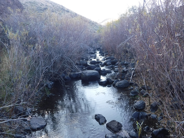 Reynolds Creek (which is a year round creek) is a gold bearing tributary of the Silver City region. These claims reside off of the north face of the Owyhee mountains, with a lower elevation of 4600 feet. This means that earlier in the spring or later in the fall, these sites are going to be accessible. Even during the milder winters, you will be able to access the sites through the winter. The other unique thing about these claims, is there is a gate over the road (chained but not locked), with a sign informing the general public that there is no access. However, this road has an easement from the BLM (which automatically gives public access from the federal side) to Elmore County to maintain this road. Again, as it is a county road, there are also no restrictions to the public. The county does not want the responsibility of maintaining it past the rural town of Reynolds and so has allowed the locals to place the gate. Under both Federal and State law, mining claim owners have “rights” to be able to use this road to access their claims. So the gate offers exceptional seclusion and privacy from the general public while working the claims.