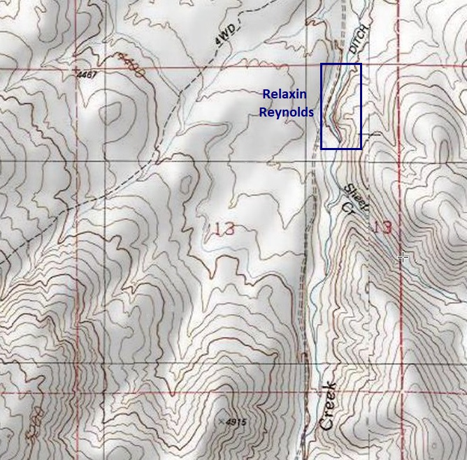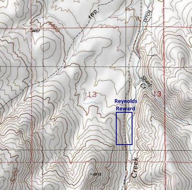 - River footage: 1300’ Reynolds Creek - Areas to make camp “on” the claim
