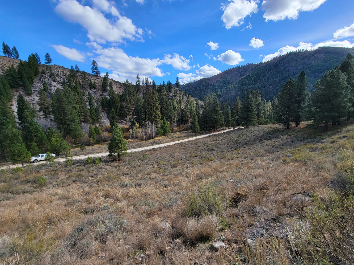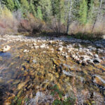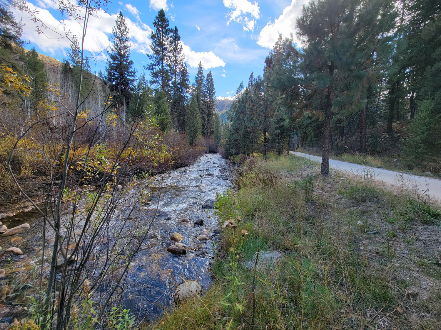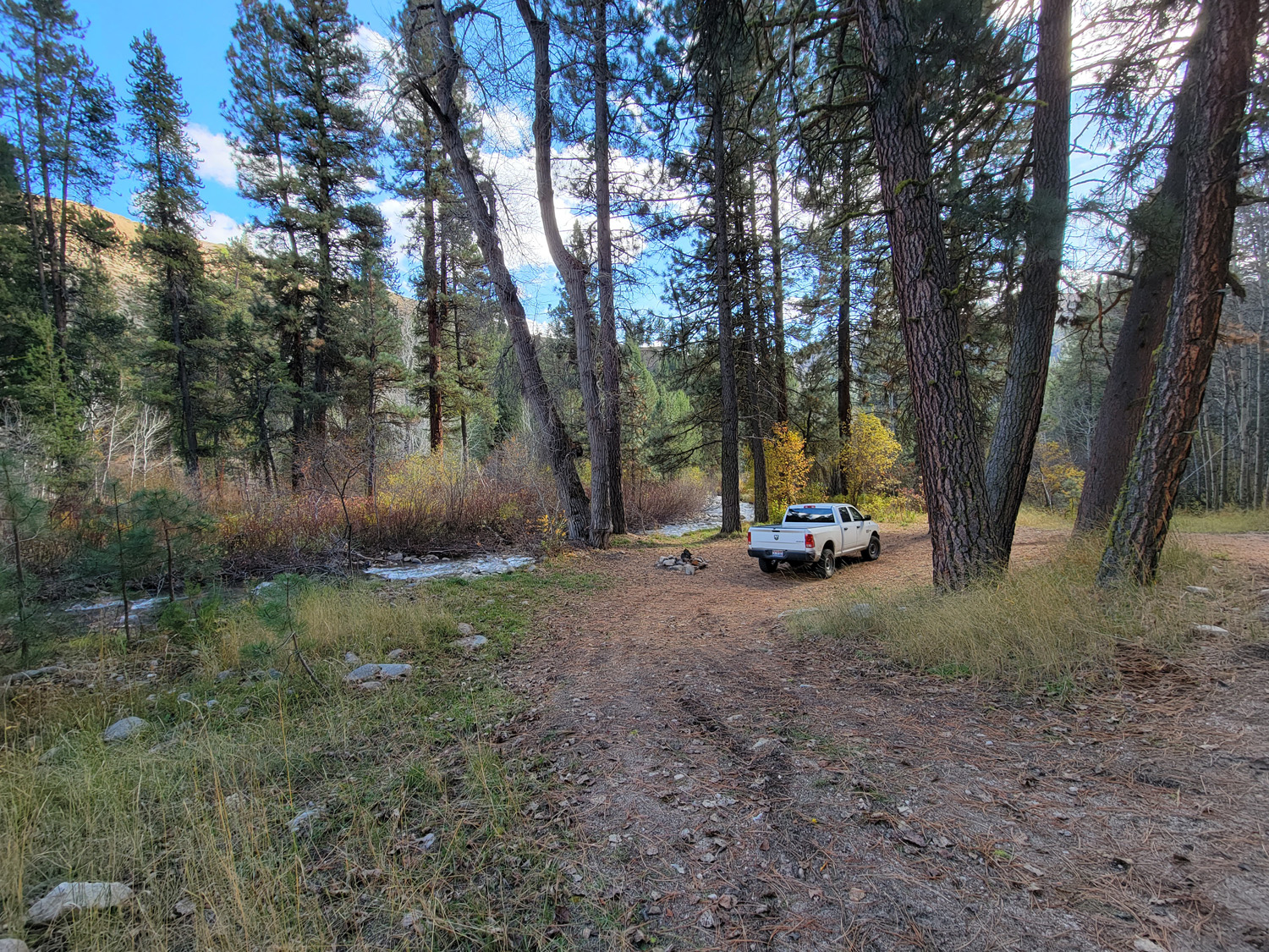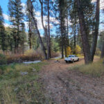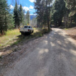 Driving Directions from Mountain Home: Take HWY 20 (from I-84 Exit 95), north out of Mountain Home for 31.5 miles. Turn left (north) onto NF 61 (AKA Pine-Featherville Rd, signs for Anderson Ranch) and stay on this road for 28.6 miles. I will note that in Pine at the T looking intersection (at 18 miles), the main road (without stop sign), veers to the right by the Pine diner…so just stay on the main road. After entering the original older town of Featherville (at approximately 28.7 miles from HWY 20), you will make continue straight on the main FeathervilleRoad (aka NF 227) for an additional 6.8 miles. Turn left (left) onto NF 008, signs for the Willow Creek Campground. You will stay on this road for 0.9 of a mile until reaching the mining claims. The mining claims extend up the road another ¾ of a mile to the large roundabout camping area.