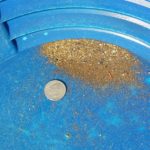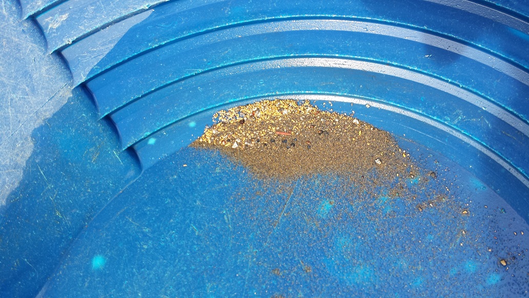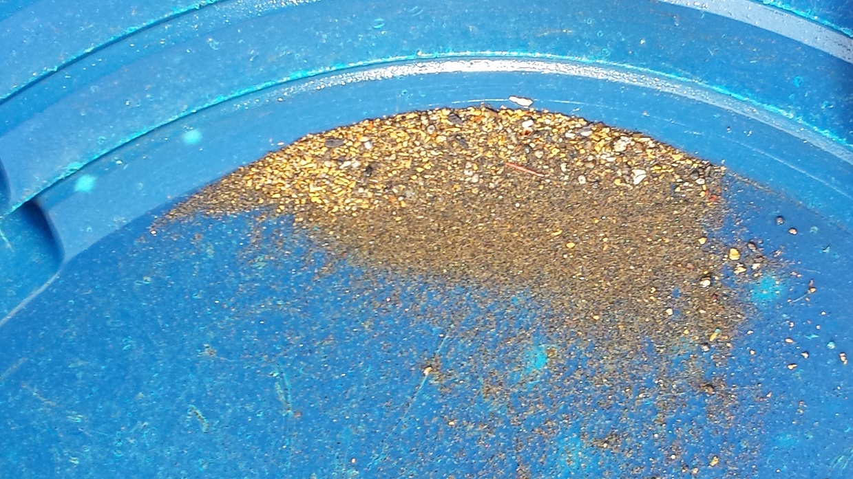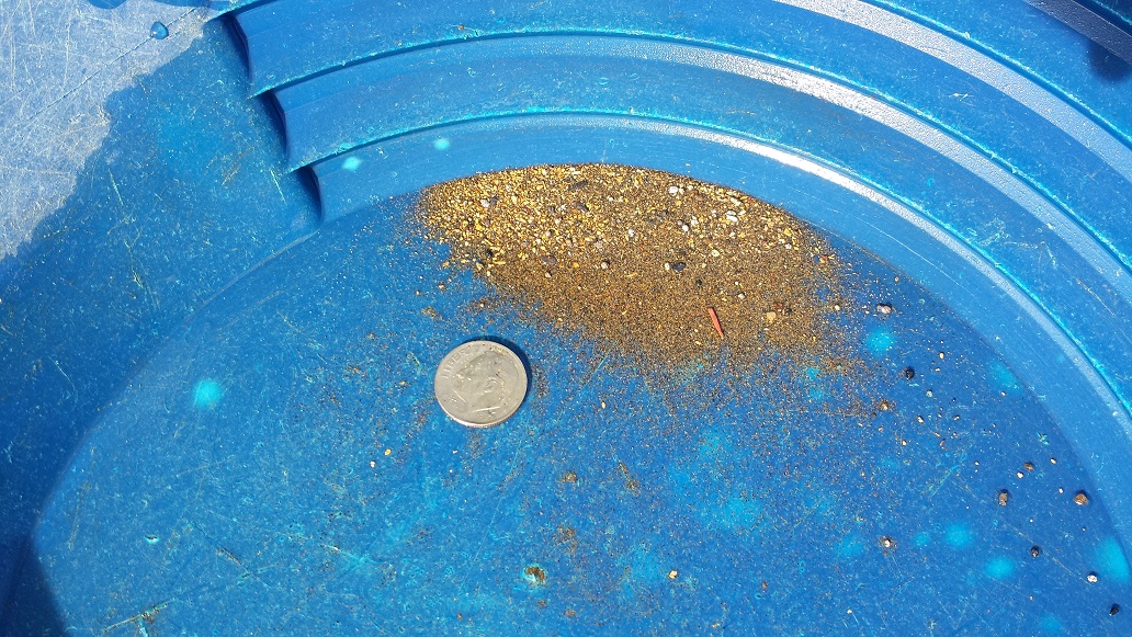 Let’s talk about the gold...we ran three test samples, with bedrock ranging between 2 to 4 feet deep. After 8 hours of running, we recovered 2.78 grams gold. Let the pictures speak for themselves. There was a lot of fine gold, and in the holes that I punched, unfortunately the bedrock seemed very level with no major cracks (where some of the larger pieces like to hang out). But that is just the luck of where I worked…the next foot over, who knows, but with having a granite base, there should be good pockets and cracks. A very small percentage of the gold did appear to have some amalgam, telling me that way back in the day mercury had been used by some of the old operations, but still a great amount left behind. In one of the holes, there was a hardpack layer that seemed virgin a few inches above bedrock. There was also more evidence of some old workings, with hand stacked rocks next to the creek, but it still didn’t prevent me from finding a decent amount of gold. I didn’t recover any specimen pieces (quartz with gold embedded or laced within it), but there was a fair amount of large quartz. In the concentrates, there was a fair amount of black sand in the deposits, with red garnet and a heavy gold sand.